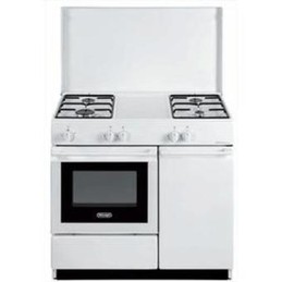 Cucina 60x60 cm colore bianca, nuova estetica Dé Longhi Design, Piano a gas con 4 fuochi a gas con nuovi bruciatori facilmente adattabili ai differenti tipi di gas, accensione elettronica sottomanopola, valvolatura di sicurezza su piano,forno elettrico