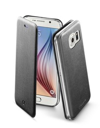 Custodia rigida trasparente con sportellino a libro per Samsung GALAXY S6, Nero