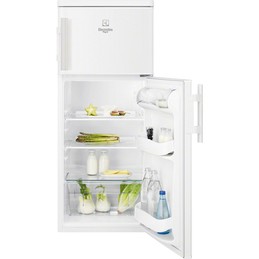 Frigocongelatore statico in classe A+ ed estetica bianca di dimensioni (AxLxP) 140 x 55 x 60 cm, con capacità totale di 234 litri (190 frigo + 44 congelatore) e autonomia di conservazione del congelatore in assenza di elettricità di 19 h.